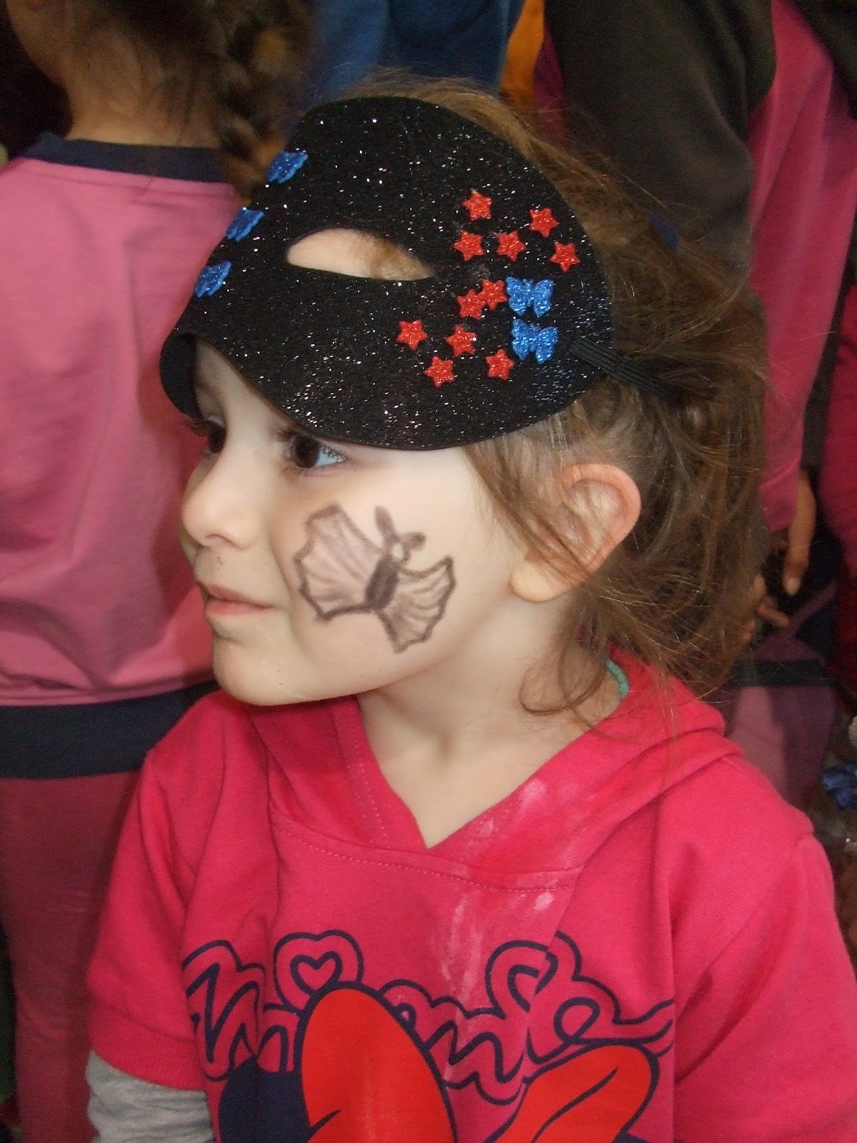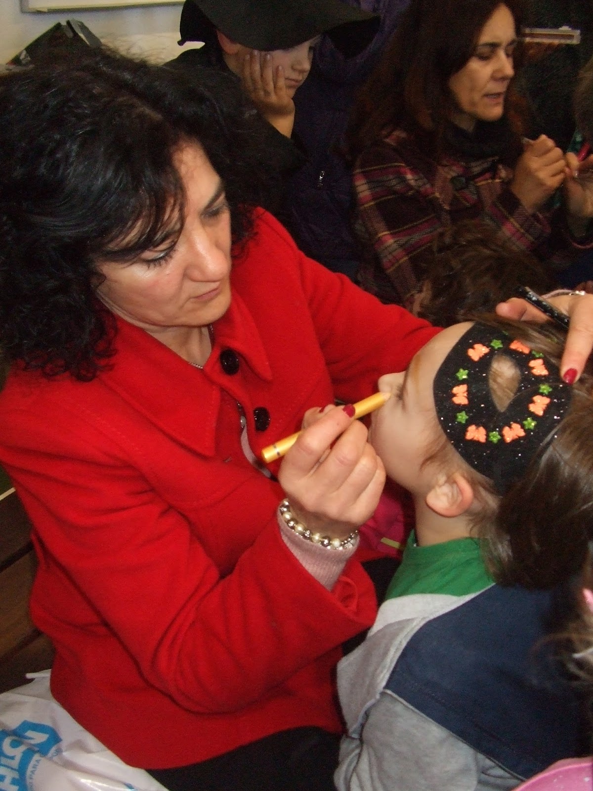 Depois do lanche, houve pinturas faciais. A educadora Antónia, de lápis em riste enfeitou os rostos felizes dos meninos com aranhas, morcegos, borboletas, tigres e tudo o que os meninos sonhavam.