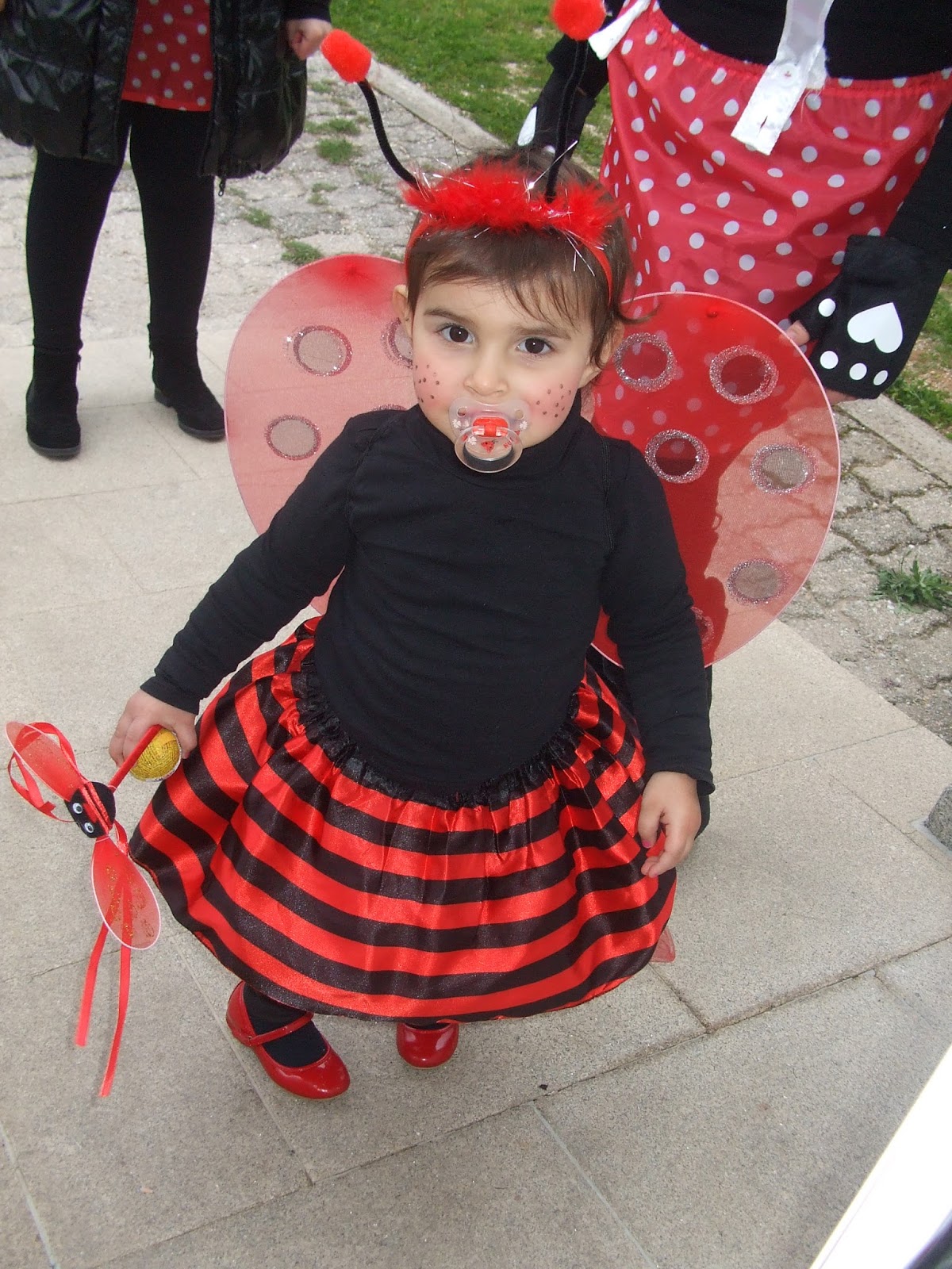 No jardim encontrei pais e meninos vestidos e preparados para o desfile.