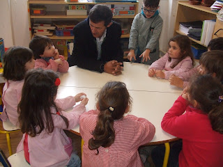Ontem, convidei o Professor Rui Modesto com quem partilho a vida e o gosto pelo ensino para vir ao nosso Jardim contar uma historia que recriei a partir de uma outra "Queres brincar comigo?".