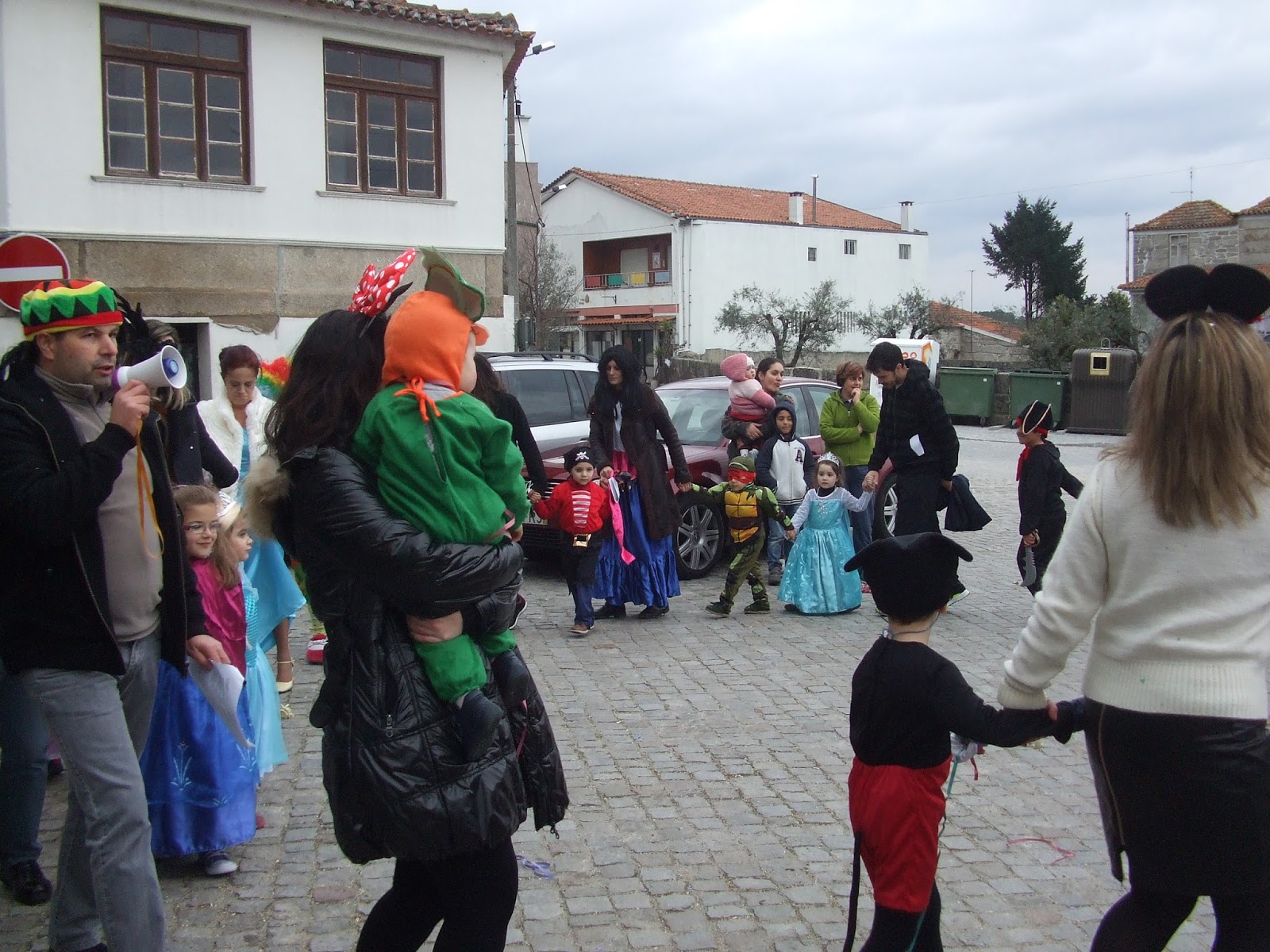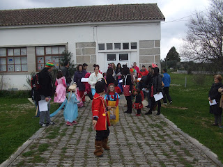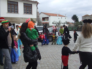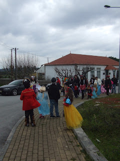 O senhor Sérgio de megafone na mãos pegou nas letras das musicas e organizou o cortejo onde havia alegria e muita vontade de festejar. Corremos a aldeia de fio a pavio onde muitos nos vieram fazer companhia de riso aberto e muita simpatia misturada.