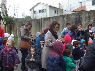 À tarde fomos fazer uma visita à mãe da Carolina que nos mostrou o quarto das meninas, onde todos se sentiram felizes e bem recebidos. Tivemos direito a lanche no jardim e brincámos no parque como tanto gostamos. Ainda parámos na casa do José Pedro onde a mãe estava atarefada com uma sopinha de feijão verde bem cheirosa e uma bebé para cuidar. A Madalena, pequenina e viçosa está muito bonita e muito simpática como o irmão. Mesmo assim a dona Tânia recebeu-nos bem e com alegria nos olhos. Está a terminar a licença de maternidade o que me faz pensar que as mães e os bebés deveriam poder ficar juntinhos por muito mais tempo para os bebés rirem mais vezes e entrar na escola fartos de colinho e afectos.