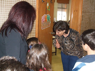 Depois do lanche fomos a biblioteca onde a Dona Alzira e a Dona Margarida de sorrisos em riste nos mostraram uma exposição sobre pintura. Havia telas, caixas de pintura, trabalhos de professores e alunos cheios de talento, um pintor de boina preta a lembrar Salvador Dali, figurino preparado para esta arte que os pequeninos começam a apreciar e da qual retiram tantas aprendizagens e prazeres.