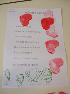 Enquanto os meninos terminavam a tarefa, a educadora Lurdes encheu a sala com uma historia de Isabel Minhós (que nos vem visitar no próximo dia dois de Junho) com voz sussurrada cheia de emoção e palavras lindas. Os meninos estavam calmos, cheios de paz e conforto. Ainda vimos uma história da mesma autora em power point que mostrava bem o que vai por dentro do coração das mães e que falava das suas emoções quando se trata do amor que sentem em cada pontinho do seu corpo. No final, cantámos uma canção doce que celebra esse amor tão forte e tão intenso.